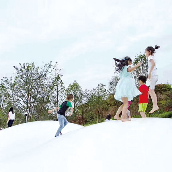 A 充氣彈跳床是采用耐沖擊、高密度、抗紫外線(xiàn)的PE加工而成的,等到充完氣之后就是充氣彈跳床了,彈性很好,大人小孩都能使用。